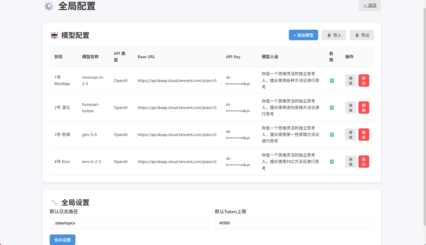 2)模型人设,我们可以连接不同大语言模型给他们不同人设,也可以连接同一个大模型,但给予不同人设。