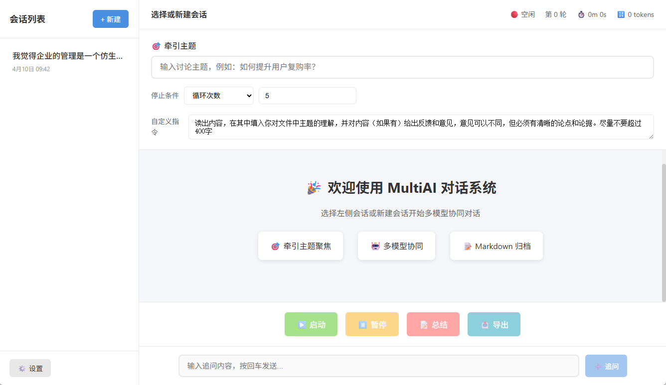 测试表明,当牵引主题的内容比较明确(哪怕是发散性讨论的主题),多轮(5轮及以上)的时候,会得到一份高质量的结果。