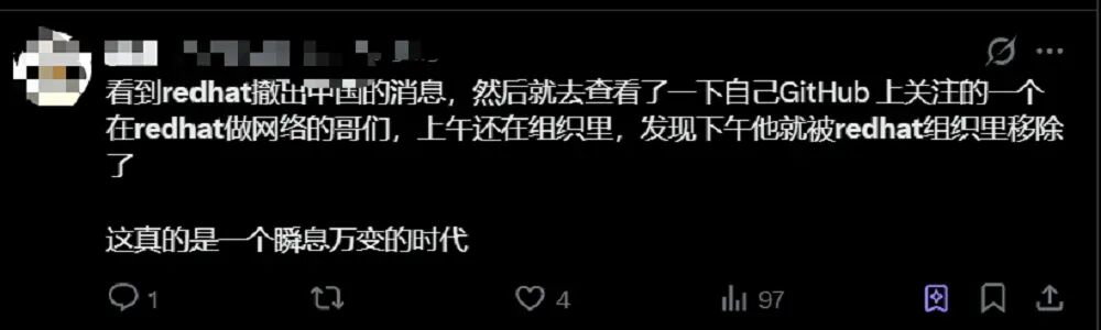 当然,感伤之余,我也有个不一样的看法:红帽中国研发的落幕,不是中国开源的倒退,反而印证了国产开源的成熟。当年红帽工程师播下的种子,如今已经长成参天大树,国产Linux生态已经能独立支撑关键行业的需求,这或许就是红帽敢彻底撤走研发的底气。只是想起那些深耕内核的工程师,想起他们为中国开源做的铺垫,还是难免觉得遗憾——一个时代结束了,而属于国产开源的新时代,才刚刚真正开始。对此,你怎么看呢,欢迎评论区留言哦~
