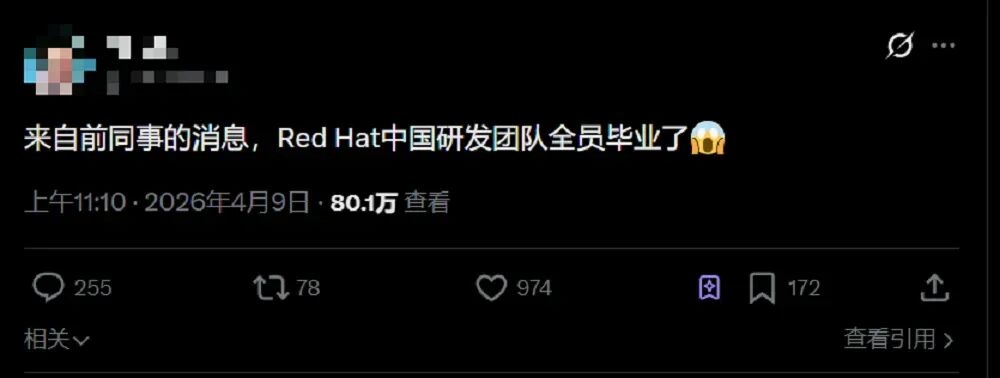 4月9号上午,刷到红帽中国研发团队被全员裁撤的消息,我心里咯噔一下。作为常年关注开源圈的博主,红帽在中国的研发团队,从来都不是普通的外企本地化团队——419名研发员工,不是做翻译、不是做售后,而是真正扎根Linux内核,参与全球开源上游建设的核心力量。