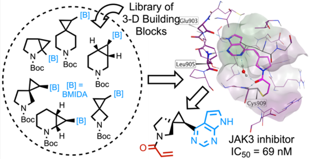 构建块采用稠合(fused)或螺环(spirocyclic)双环结构,核心均包含一个环丙烷单元。环丙烷在这里扮演关键角色:
