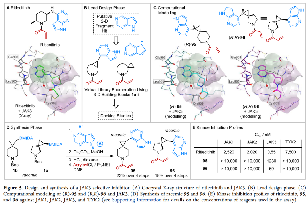 平台的核心优势在于其可编程性——虚拟库枚举、计算对接与已验证的合成路线三者构成一个可重复执行的闭环,使得从二维片段命中物到三维先导化合物的转化可以像"流水线"一样运作。JAK3 抑制剂(IC₅₀ = 69 nM,JAK3 选择性)的发现,不仅是化学方法学的概念验证,也展示了其直接转化为药物研究价值的潜力。