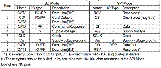 传输模式上,SPI 模式以串行数据传输为核心,支持独立的序列输入和输出,特别适合接口资源紧张的单片机系统。虽然其传输速率不及 SD 模式,但凭借协议简单、兼容性强的特点,成为嵌入式设备常用选择。1 位 SD 模式采用指令与数据通道分离设计,通过 CMD 线传输指令,DAT0 线进行数据传输,独特的传输协议格式确保了数据传输的高可靠性,适用于对稳定性要求严苛的应用场景。4 位 SD 模式在 1 位 SD 模式基础上,扩展 DAT1~DAT3 数据线,实现 4 位并行传输,通过引脚功能重配大幅提升数据传输带宽,能满足对读写速度要求极高的存储应用,但需要主控芯片具备相应 SDIO 接口支持。