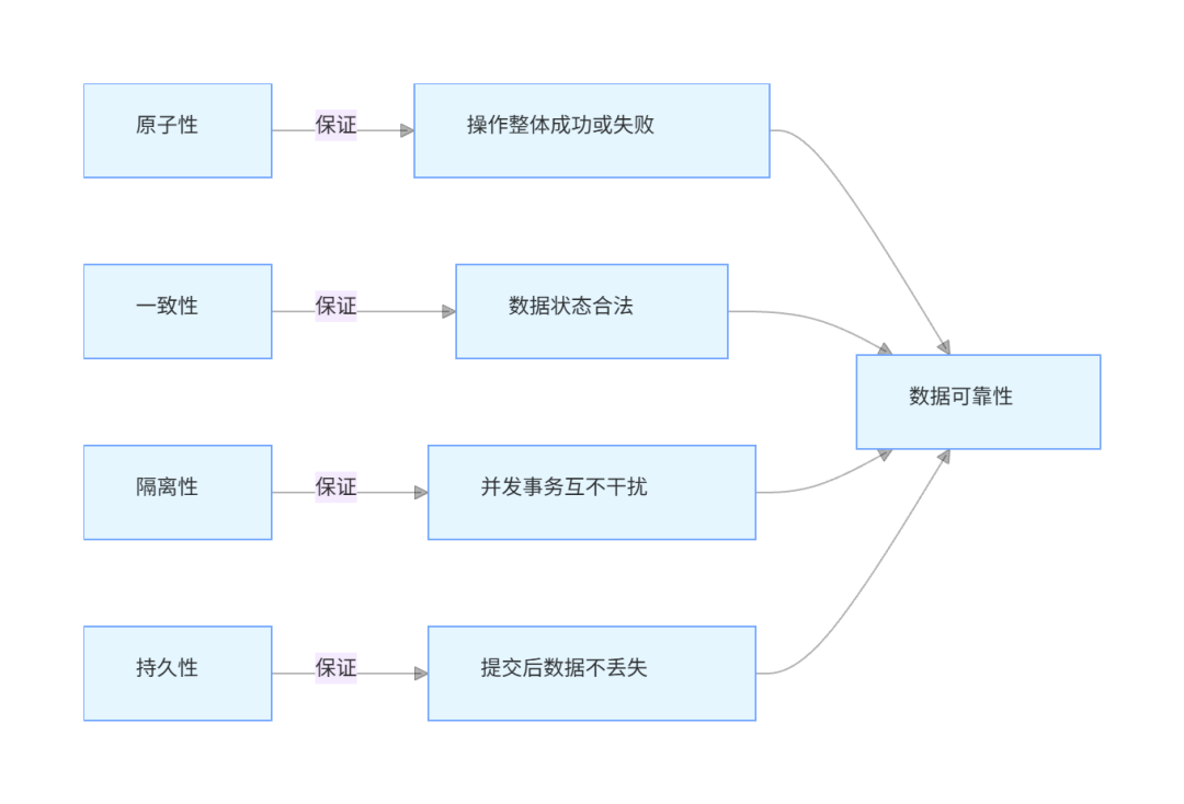 事务必须满足 ACID 特性,这是保证数据一致性的基础: