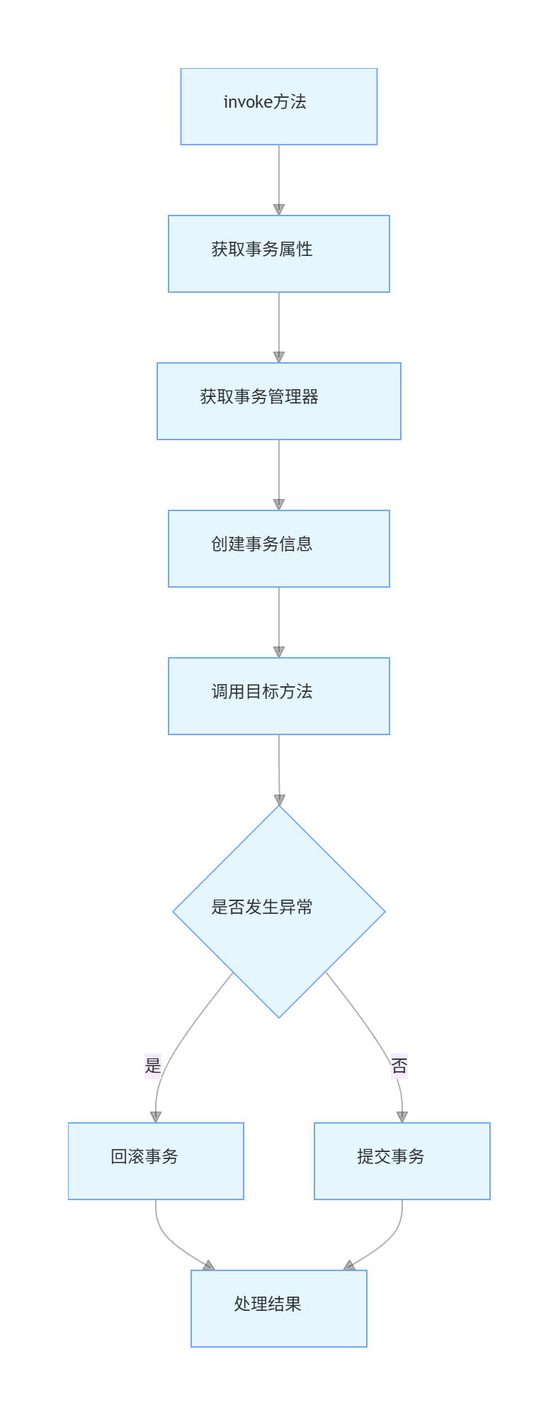 TransactionInterceptor 是事务管理的核心拦截器,其工作流程如下: