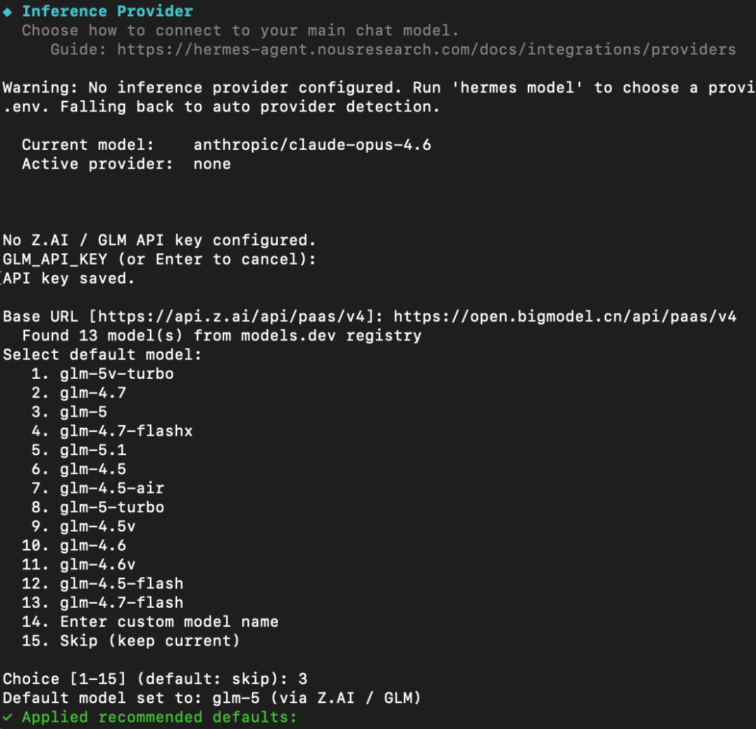 接着设置大模型,我选择的是智谱GLM-5。
