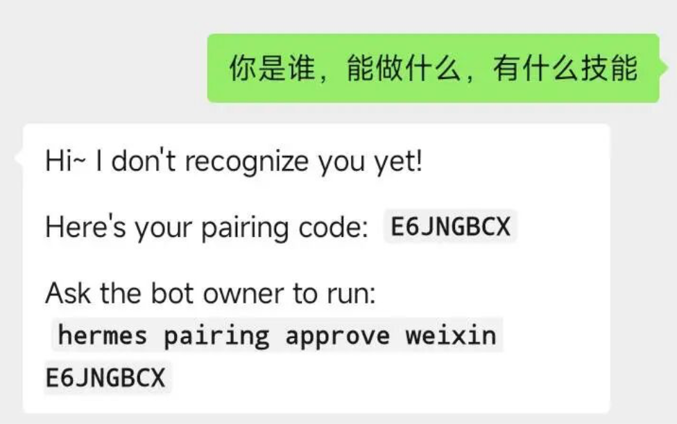 hermes pairing approve weixin E6JNGBCX