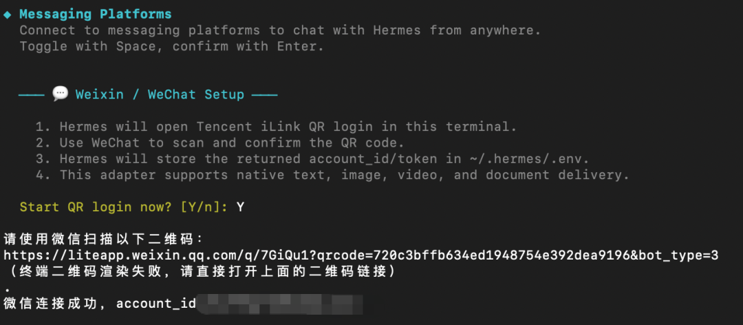得益于腾讯之前推出的 QClaw (微信版“小龙虾” QClaw 上线,Agent 正在从能力竞争走向入口竞争)公开的官方接口:iLink Bot API,Hermes 也用的是这个适配器。