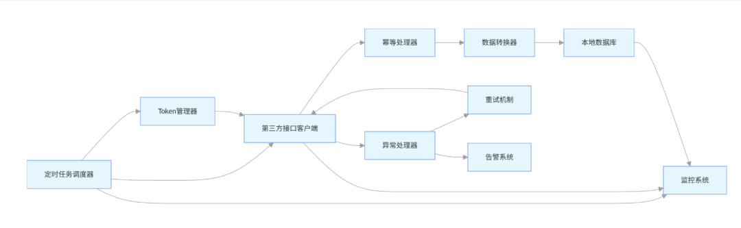 在开始讨论具体实现之前,我们先来看一下典型的定时任务调用第三方接口的系统架构: