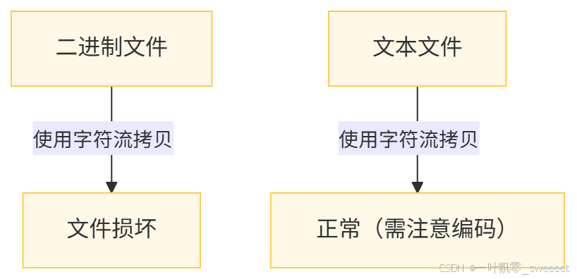字符流是专门用于处理文本文件的,它会涉及字符编码的转换,因此不适合用于二进制文件的拷贝。