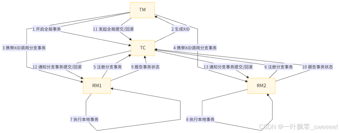 Seata 定义了三个核心组件来实现分布式事务: