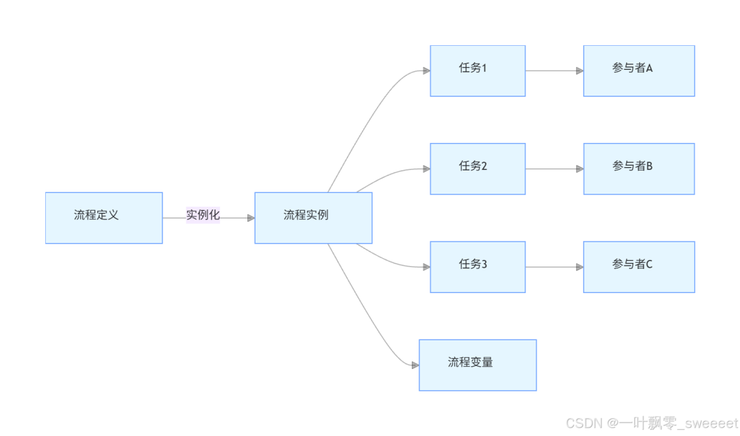 在深入代码实现之前,我们需要先理解审批流程引擎的核心概念,这些概念大多源自 BPMN 2.0(Business Process Model and Notation)规范,是流程引擎的理论基础。