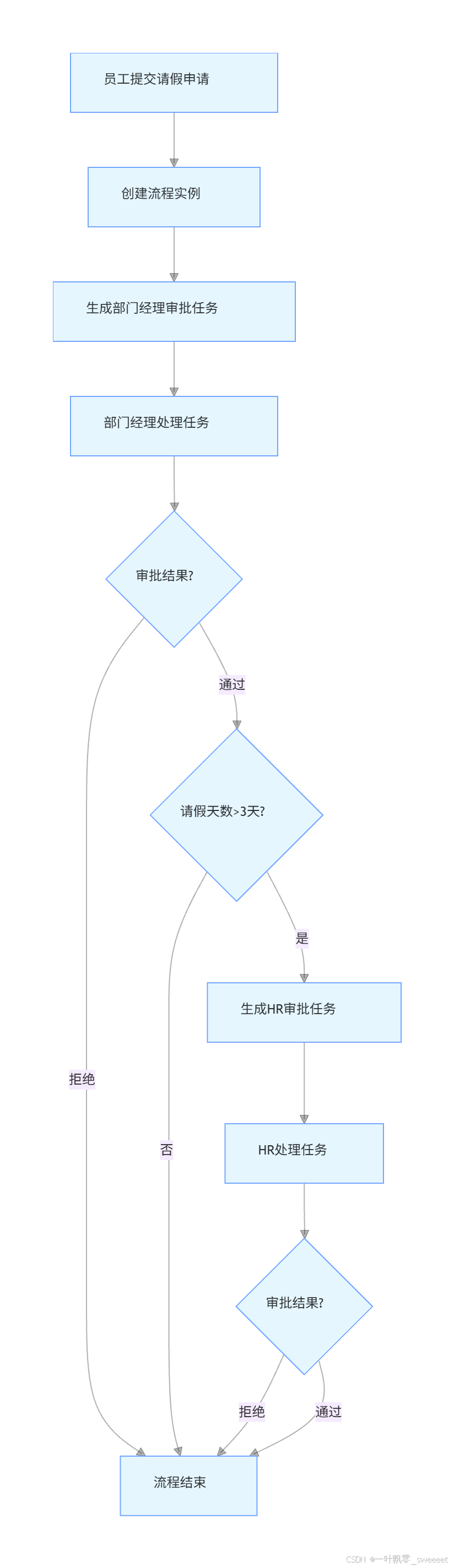 // 分支节点 -> 结束节点(请假天数≤3天)