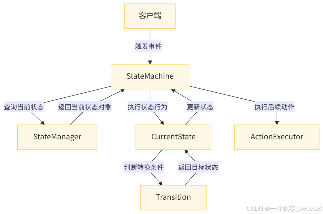 状态机模式(State Pattern)为这种困境提供了优雅的解决方案。它通过将对象的状态封装成独立状态类,将状态转换逻辑集中管理,实现了状态、行为与转换规则的解耦。在审批系统中,这意味着我们可以: