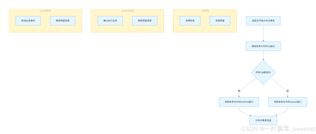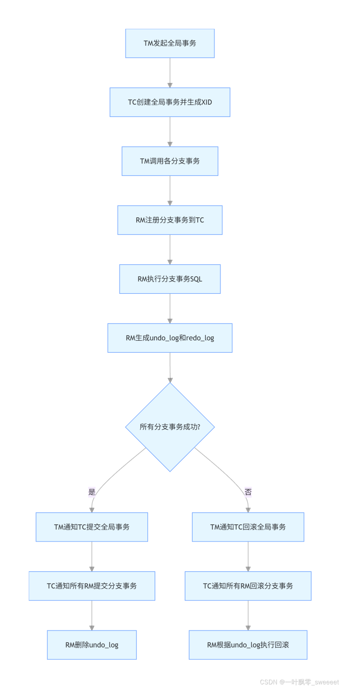 数据库宕机 | 本地事务保证,恢复后可继续 | Try 阶段预留资源,恢复后可继续 | 基于 undo_log 回滚,恢复后可继续 |