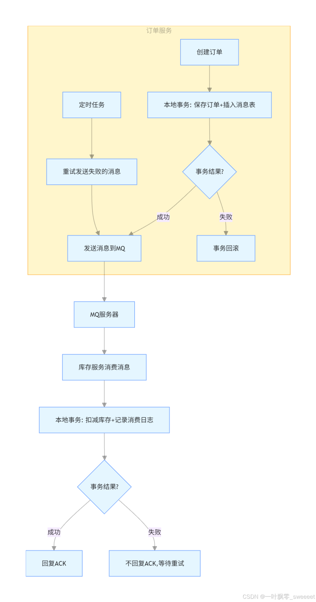 这种方案的本质是通过本地事务保证消息的可靠生成,通过消息队列和重试机制保证消息的可靠传递和消费,从而实现最终一致性。