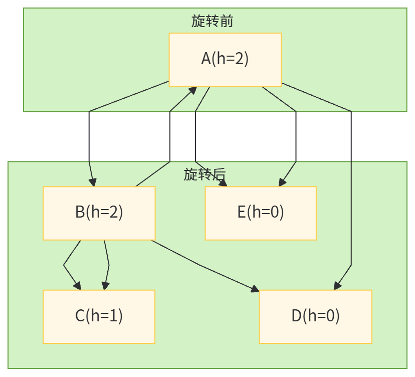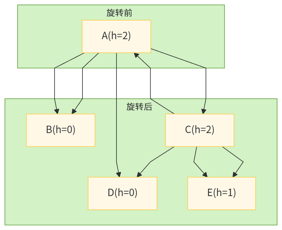 旋转是AVL树保持平衡的关键,本质是通过调整节点的父子关系,将失衡的子树恢复平衡。根据失衡位置的不同,旋转分为四种类型:LL(右旋转)、RR(左旋转)、LR(先左后右)、RL(先右后左)。