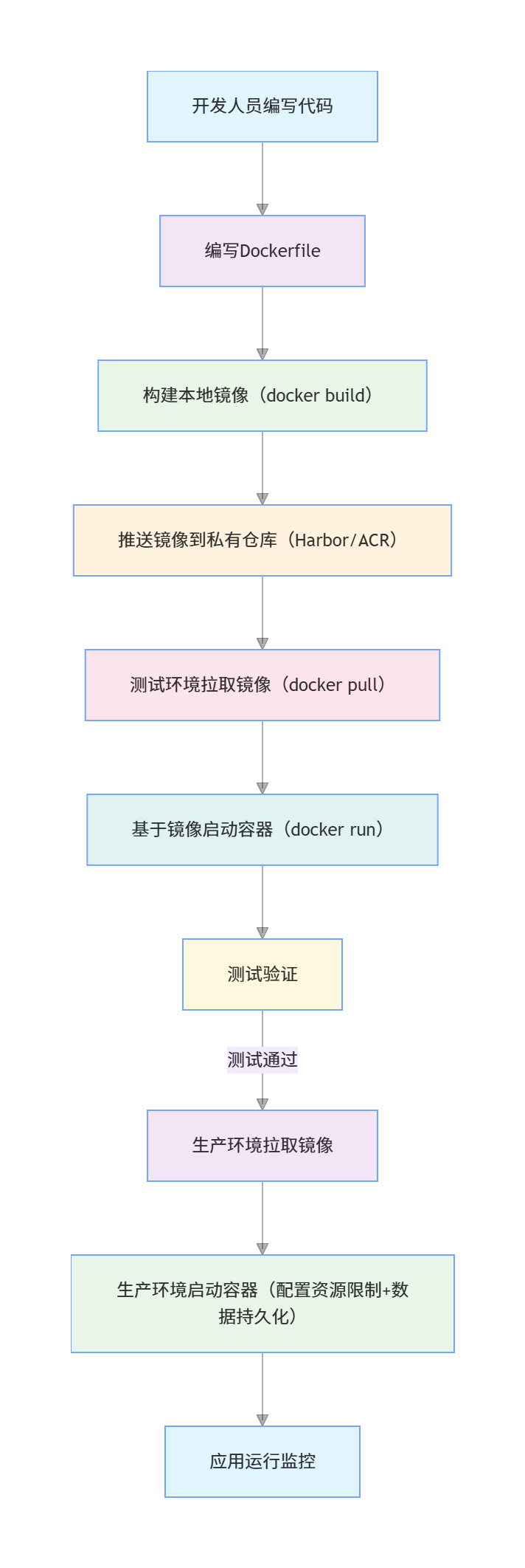 结合前面讲解的镜像、容器、仓库,梳理企业级开发部署的完整流程: