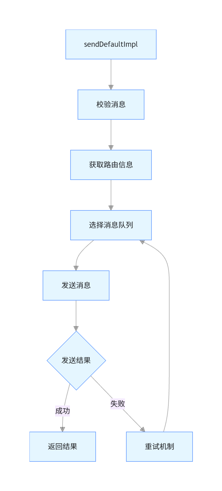 Producer发送消息的核心入口是DefaultMQProducerImpl#sendDefaultImpl,完整流程: