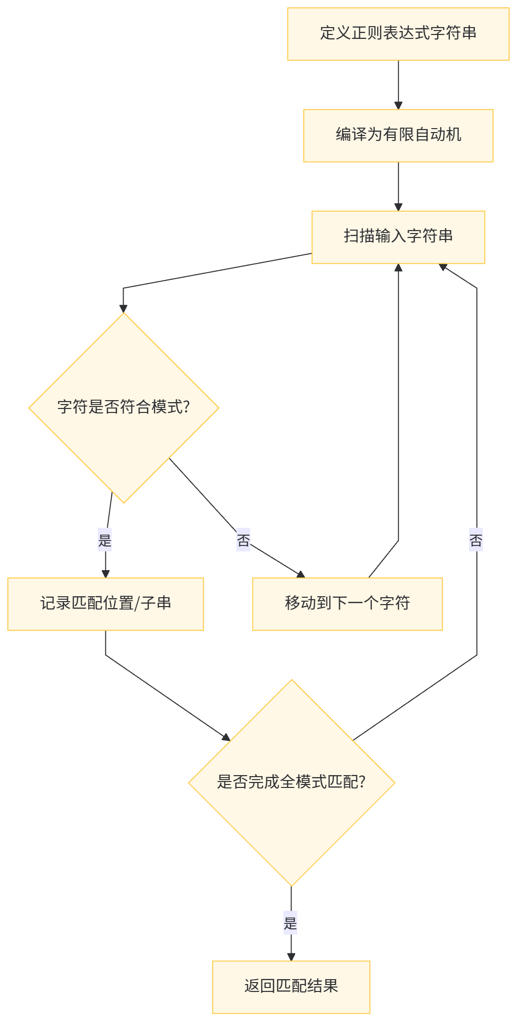 REGEXP运算符,实现复杂的模糊查询;正则表达式的执行本质上是“模式匹配引擎”对输入字符串的扫描与匹配过程。不同语言的正则引擎实现略有差异,但核心流程一致: