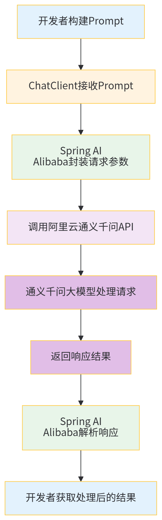 /api/qwen/stream/generate{"userPrompt":"详细讲解Spring AI Alibaba的核心优势,分点说明,不少于500字"}Spring AI Alibaba支持通义千问的函数调用能力,可实现“AI分析问题→调用指定函数→返回函数执行结果”的闭环,适合业务场景的深度集成: