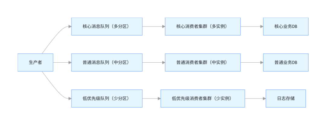 比如电商系统中,百万订单消息积压,此时可以暂停“订单评价、物流通知”等非核心业务的生产者,只保留“订单创建、支付回调”等核心业务的生产者,让消费端集中精力处理核心消息。