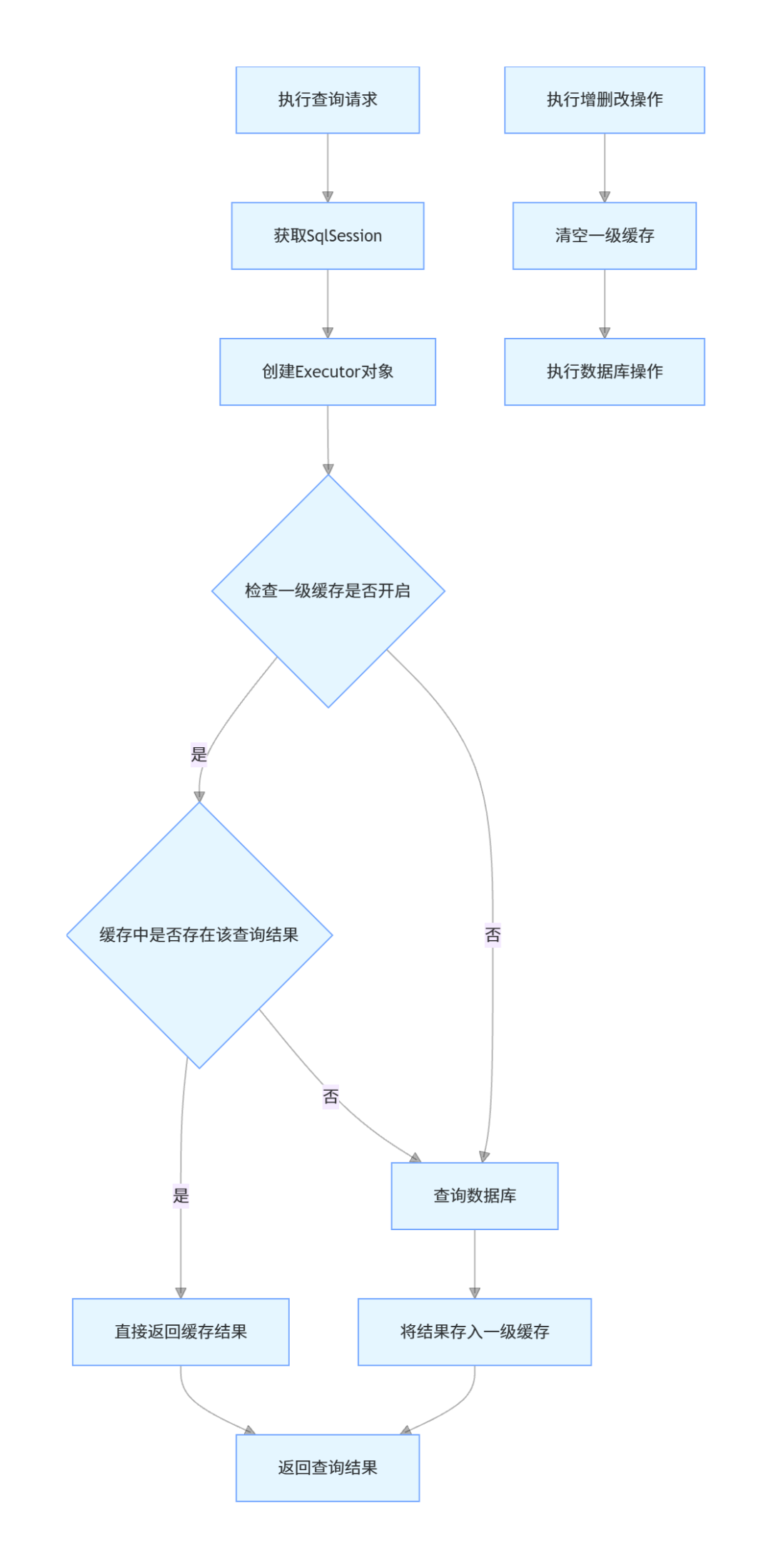 SqlSession提交后,第二个SqlSession执行相同查询时,会直接从二级缓存获取结果(注意:两次结果不是同一对象,因为二级缓存会反序列化对象)。SqlSession未提交、执行增删改操作都会导致二级缓存失效。对比项 | 一级缓存 | 二级缓存 |