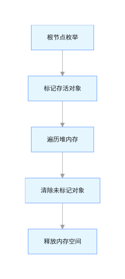 标记-清除是最基础的GC算法,分为两个阶段:标记阶段和清除阶段。原理: