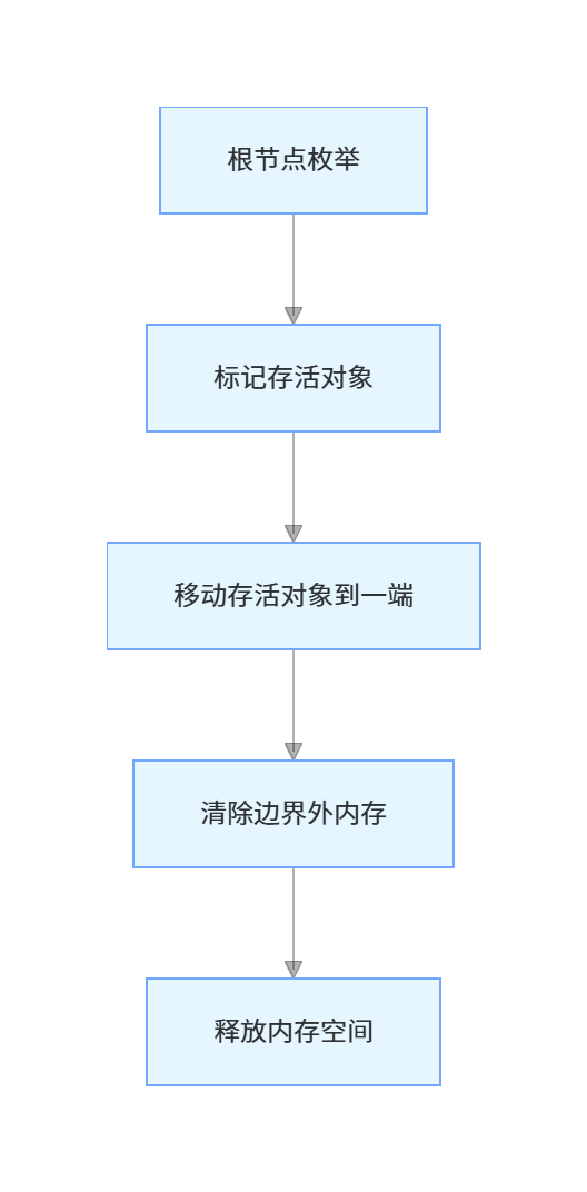 标记-整理算法结合了标记-清除和复制算法的优点,适用于老年代。原理: