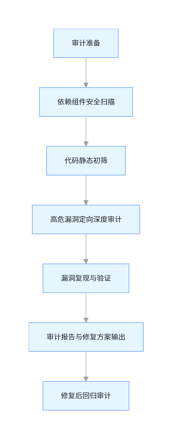 代码安全审计不是零散的漏洞查找,而是一套标准化的全流程操作体系。本章节将梳理完整的代码安全审计流程,帮助开发者建立系统化的审计能力,避免遗漏高危漏洞。