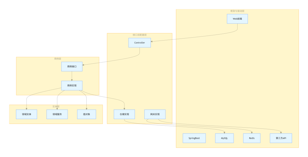 架构设计的本质,是解决业务复杂度带来的代码耦合、迭代困难、维护成本高的问题。分层、六边形、整洁架构三者并非对立,而是一脉相承的演进关系,核心都围绕「关注点分离」与「依赖反转」这两个最本质的设计原则。