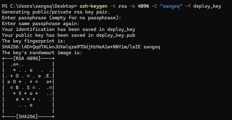 •-t rsa:密钥类型为 RSA;•-b 4096:密钥长度 4096 位,增强安全性;•-C:注释,可填邮箱或用途;•-f deploy_key:密钥输出文件名。