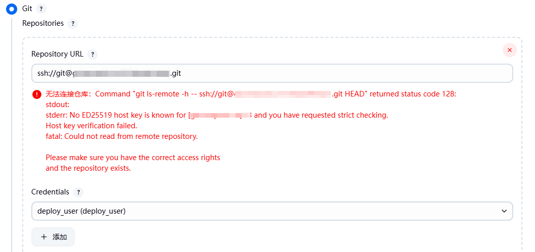 构建报错 "Permission denied (publickey)" | 公钥未配置正确 | 检查公钥是否添加至 Git 仓库 |