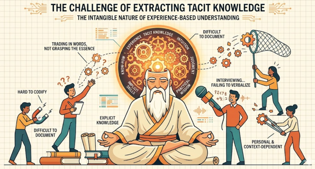 这就是我们在知识管理里常说的“隐性知识”。老师傅的很多经验,是肌肉记忆,是直觉,是在无数次失败中练就的“盘感”。你让他坐在电脑前,把这些经验写成一步一步的逻辑规则(Skills化),他会抓狂的,因为他自己也意识不到自己具体是怎么做的。