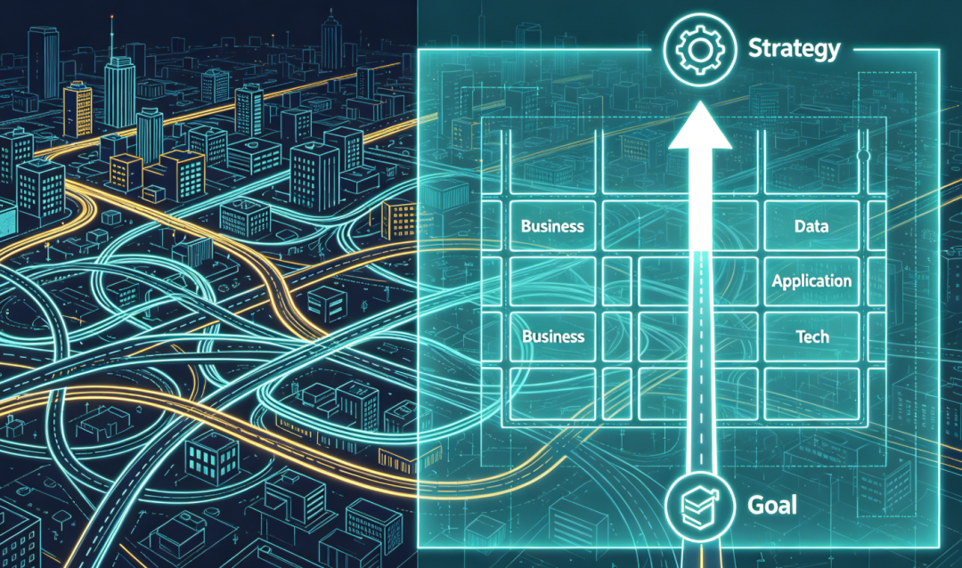 它就像一张战略落地的导航地图。老板在地图上指出目的地(“未来三年,我们的个性化定制业务要占营收30%!”),企业架构师就能在这张地图上,清晰地标出:要想到达这个目标,我们需要新建哪些业务流程、上线哪些应用系统、打通哪些数据、升级哪些基础设施。