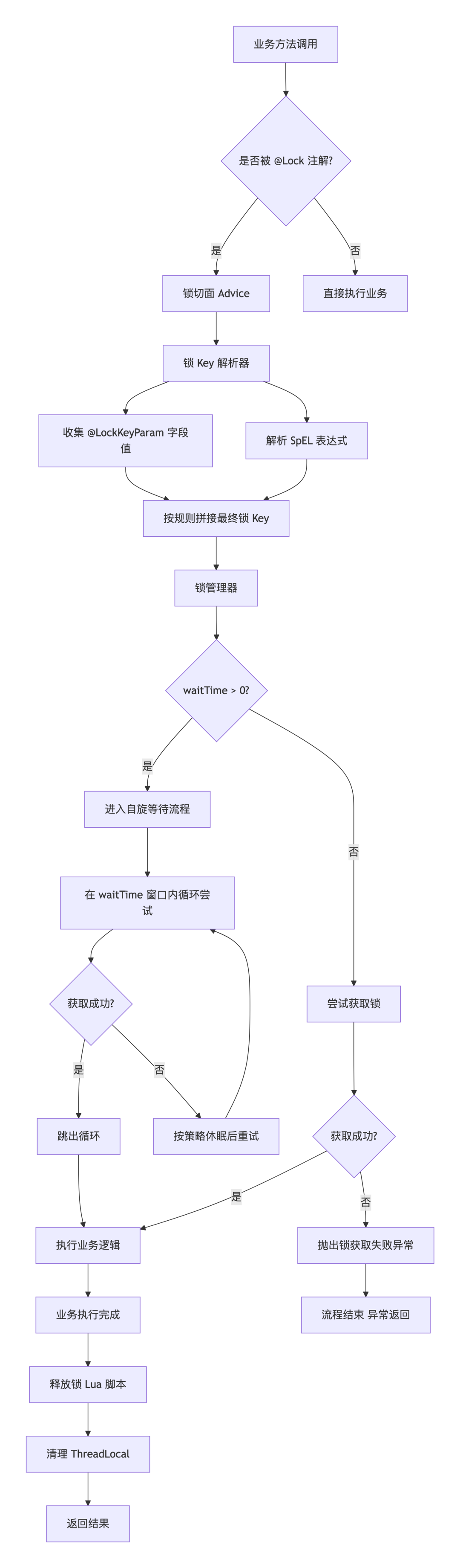 }第4步:在 Service 方法上使用 @Lock组件支持两种模式:快速失败 和 自旋等待。