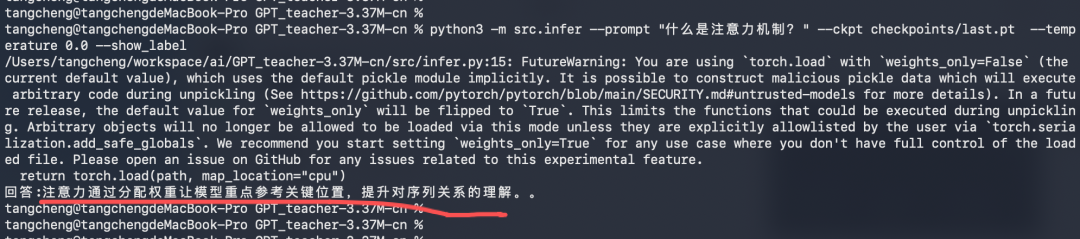 % python3 -m src.infer --prompt "什么是注意力机制?" --ckpt checkpoints/last.pt --temperature 0.0 --show_label输出的回答: