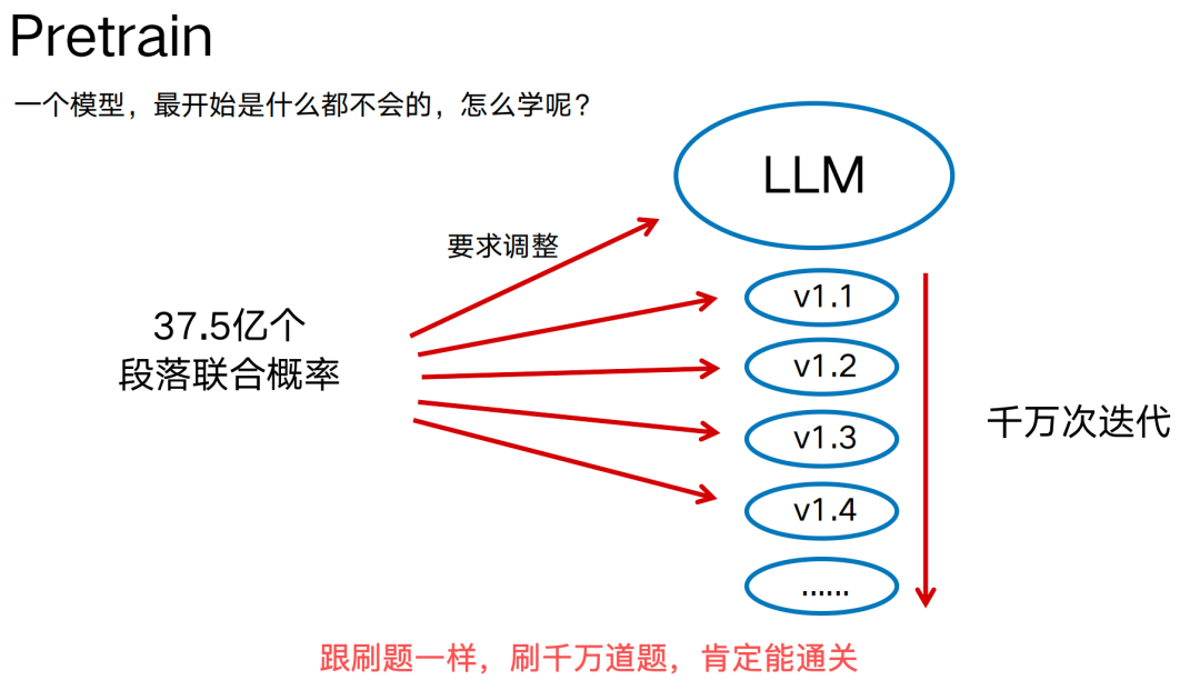 简单的讲,Pretrain就像考试前的刷题,先看做题,再对答案,如果不对,找出错误原因,改变大脑中已有知识,现继续刷,直到所有题的答案与大脑中的知识是一致的。