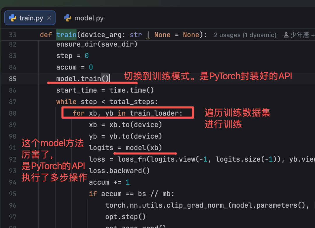 这个model方法之所以有这个功能,是PyTorch使用了模板模式抽象了大模型训练的流程。