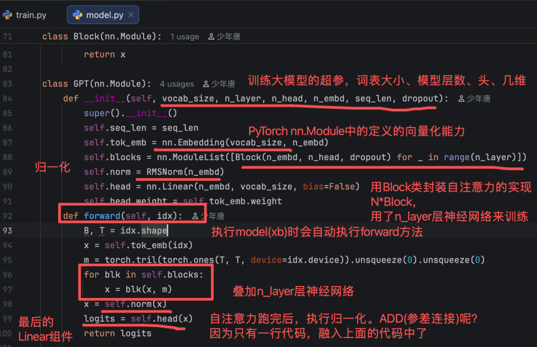 PyTorch框架很强,把大模型的训练过程封装的很好,我们自己写的代码会大量使用nn.Module的API,本次先知道PyTorch的这个API,知道这个API是干什么用的就可以了,后面开个专题来讲一来,本次不展开。