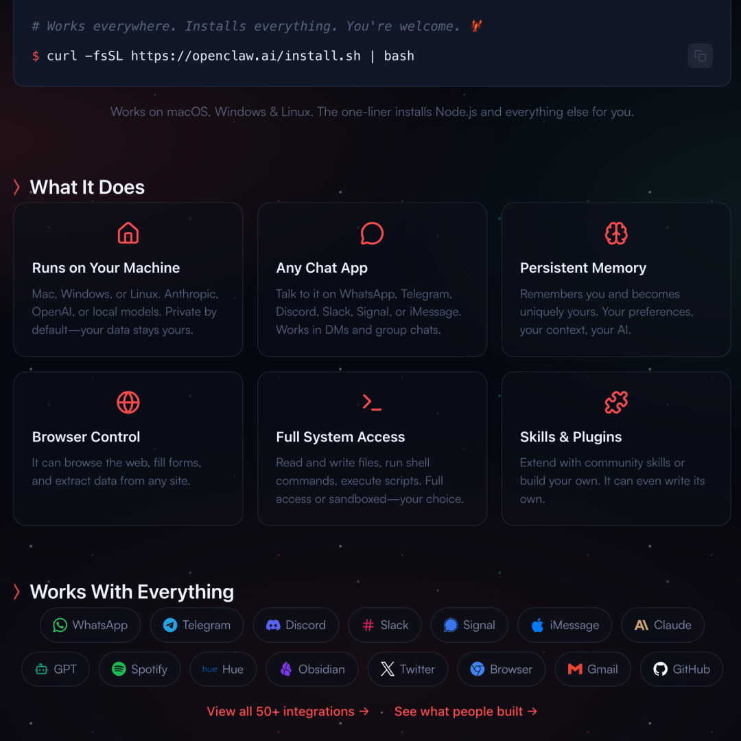 创新点:OpenClaw打破了"应用即界面"的传统认知,提出"提示词即界面"的理念。Peter在采访中直言:"未来一大批应用会消失,提示词就是新界面。"当你只需说"帮我查麦当劳的菜单",而不是打开MyFitnessPal、Google Maps和Google搜索,智能体自动组合API完成任务,传统应用自然失去了存在价值。