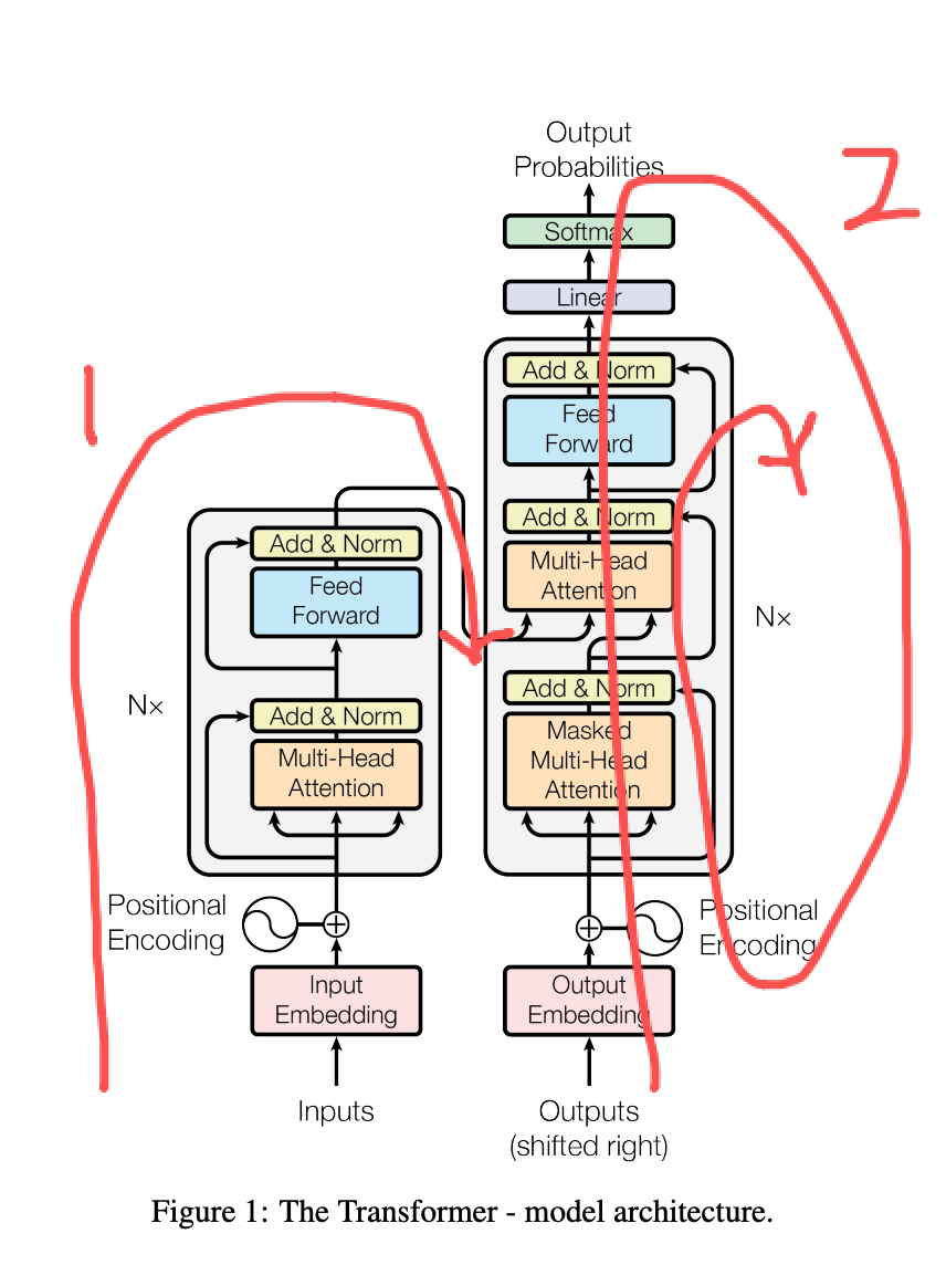 它们从左下角的输入口出发,经过编码器的层层淬炼,再进入解码器的单向迷宫,最后从顶部的 Softmax 出口,化作你看到的答案。
