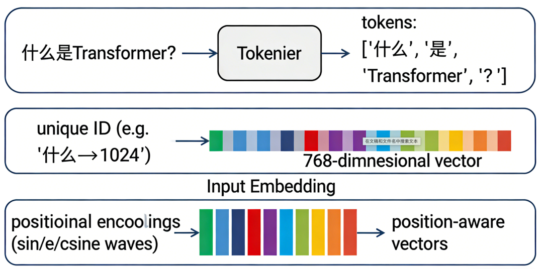 ["什么", "是", "Transformer", "?"]模型不认识汉字,只认识数字。每个 Token 会被映射成一个唯一的 ID(比如 “什么” 对应 1024),再转换成一个高维的嵌入向量(Embedding)。这个向量就像 Token 的 “基因”,承载了它的初始语义。