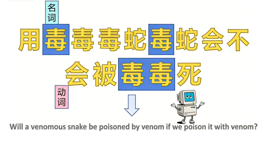 比如在翻译“用毒毒毒蛇”时,当模型处理到第二个“毒”(动词),它就应该重点关注前面的“用毒”(名词),知道这是“用毒药”的动作;而处理到“毒蛇”时,又要把“毒”和“蛇”绑定,理解为“有毒的蛇”。