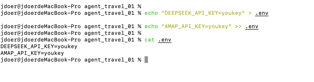 echo "AMAP_API_KEY=youkey" >> .env # 注意这里是两个大于号