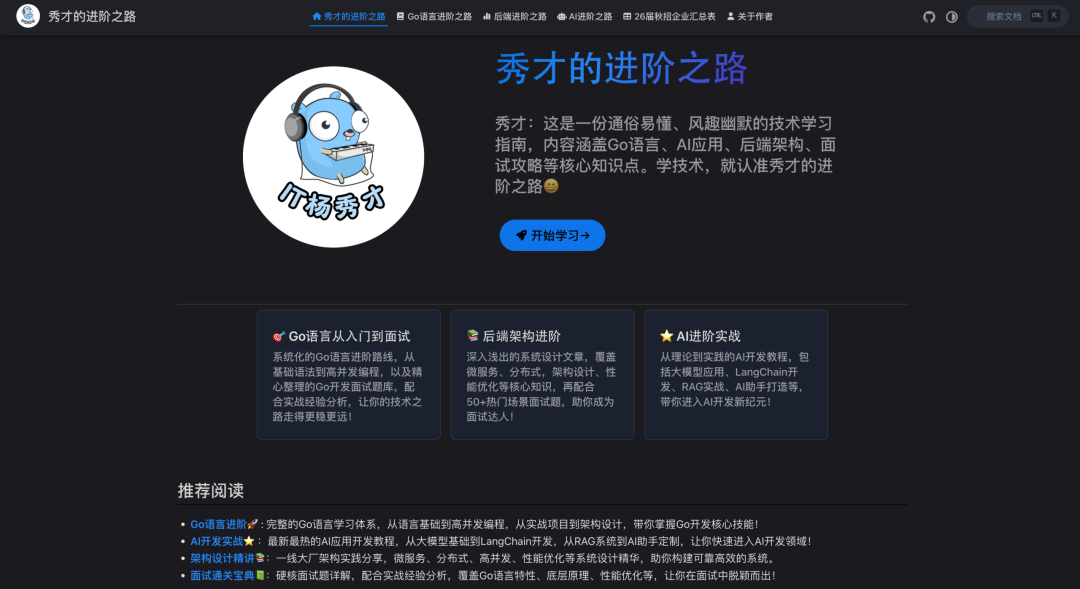 秀才的学习网站:https://golangstar.cn/