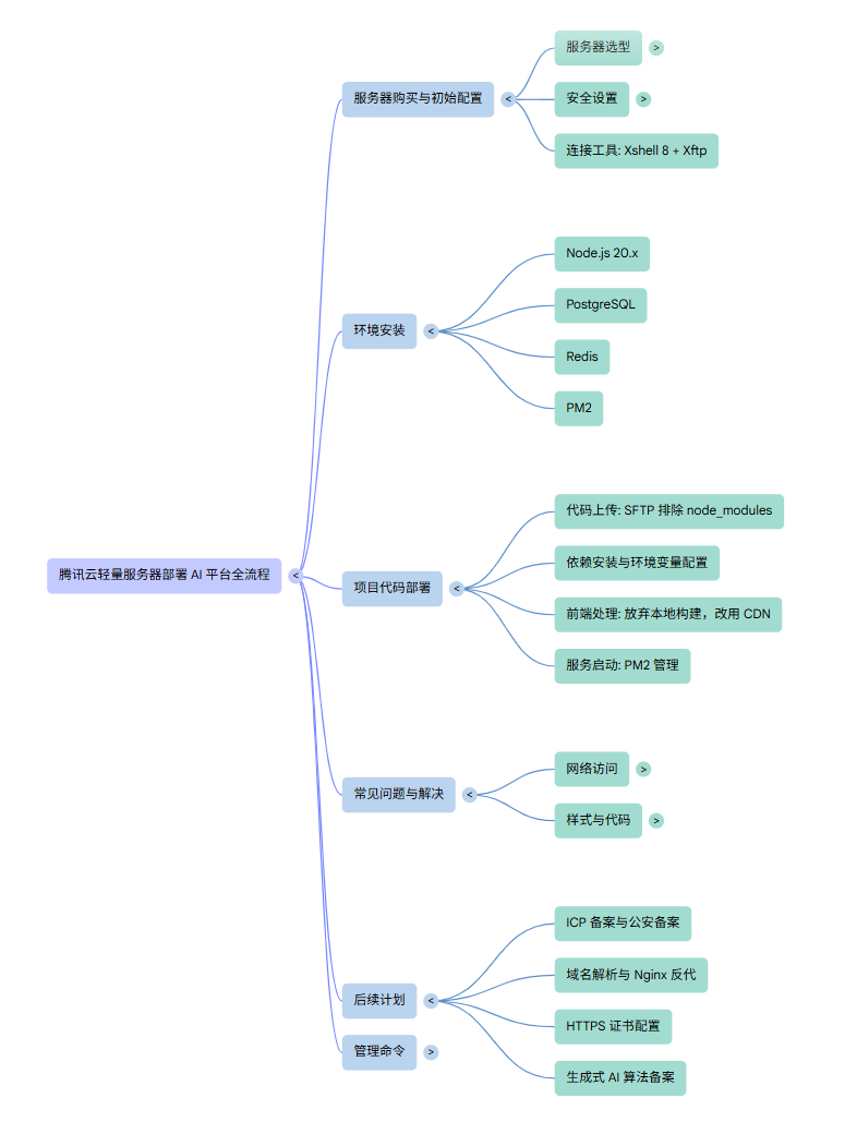 目前,由于是早期验证AI的6阶段,所以起步选择的方案比较轻量,所以我们暂定的方案思维导图如下: