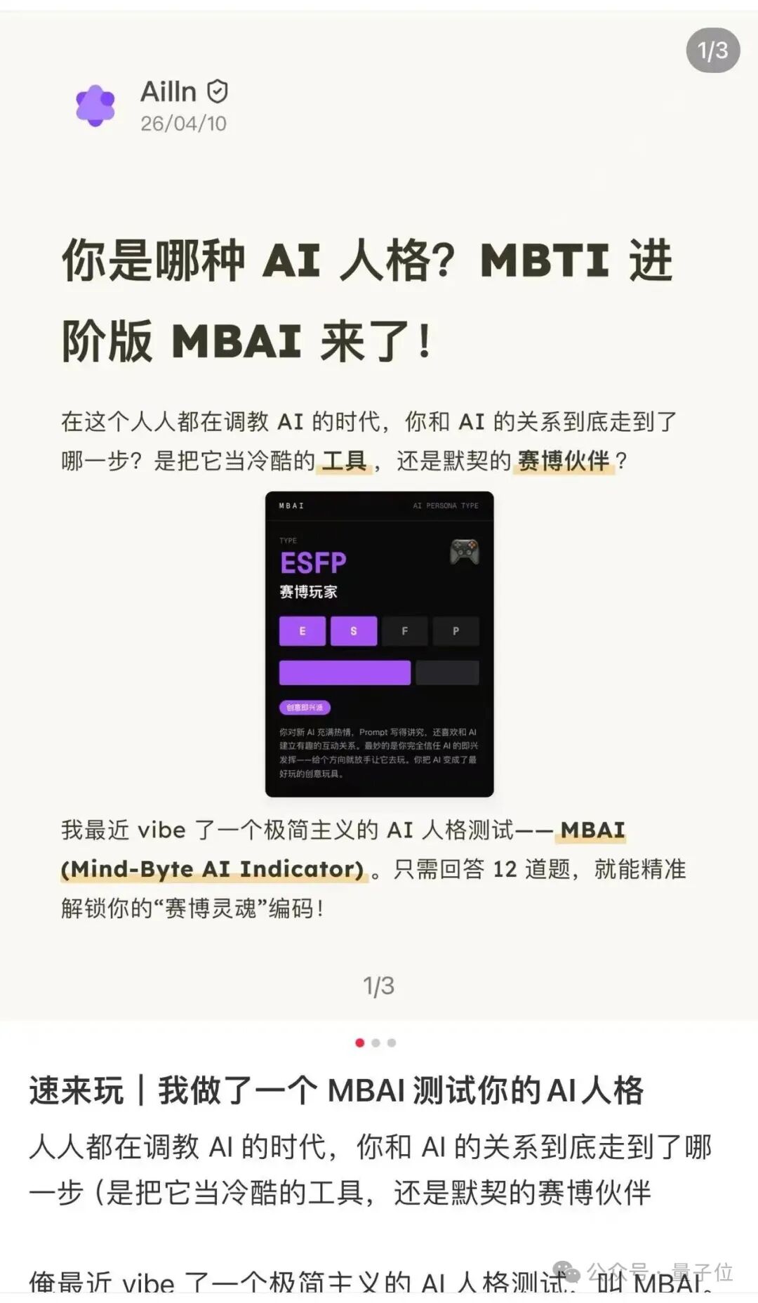 有大神网友@Ailln AI,vibe出来了个「MBAI」版的测试题…