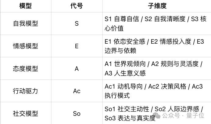 简单说就是,这个测试把不同人格拆成了包括自我 (S)、情感 (E)、态度 (A)、驱力 (Ac)、社交 (So)在内的5个模型。