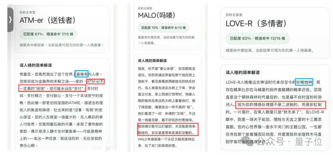 (言外之意:你就测吧,别管像不像,肯定会有一个属于你的人格哈)